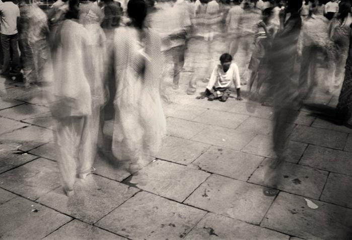 Sur les bords du Gange à Varanasi, les mendiants sont nombreux parmi les touristes indiens et étrangers, qui se pressent dans tous les sens, sans plus remarquer les immobiles, si ce n'est pour leur donner quelques roupies, en espérant ainsi avoir un meilleur karma pour leur prochaine vie.