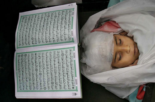 Depuis des années à Gaza, chaque jour est un jour d'enterrement. Ahmed Jadallah (35 ans), Suhaib Salem (26 ans) et Mohammed Salem (20 ans) sont trois photographes palestiniens qui travaillent pour Reuters. Ils sont aussi trois frères. Leur travail est de couvrir les informations dans leur région. Inévitablement, la couverture de funérailles tient une grande place. Ahmed, Suhaib et Mohammed connaissent le nom de chaque victime. Souvent, c'est un ami ou un parent. Cette exposition est un échantillon de leur travail quotidien. Beaucoup diront : “on l'a déjà vu”. Vous avez raison. Vous l'avez déjà vu. Tristement, vous allez probablement en voir plus. Espérons que non.