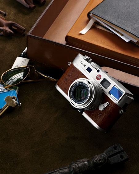 The rugged Leica M body and matching Summicron-M 35mm f2.0 ASPH lens are finished in classic chrome. The body is covered in luxurious brown ostrich leather trim with a matching ostrich leather strap. The high-resolution 2.5-inch LCD screen is protected by sapphire cover glass. Each lens and body is numbered, and your gift can be personalized with an engraved signature; please order by October 15, 2010, for holiday delivery. A three-year warranty covers accidental damage. A full suite of Adobe® Photoshop® Lightroom® 3 digital editing software–and a personal letter from Leica CEO Alfred Schopf and certificate of authenticity–are included. Your gift can be personally delivered by a Leica photography expert and include a private training and orientation session.