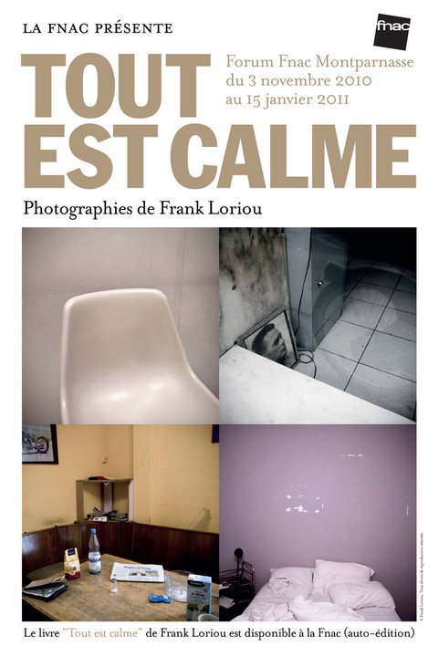 Les Galeries Photo de la Fnac soutiennent, au travers d'une exposition, l'ouvrage auto-édité "Tout est calme" du photographe Frank Loriou. Exposition Tout est calme forum Fnac Montparnasse, niveau -1 du 3 novembre 2010 au 15 janvier 2011 (Entrée libre) « Tout est calme » est le premier ouvrage photographique auto-édité (en édition limitée) du photographe Frank Loriou, qui s’est attelé à un journal photographique quotidien pensé comme un écho hexagonal au travail de Stephen Shore, William Eggleston, Rinko Kawauchi ou Lars Tunbjörk. Il y a collectionné toutes ses obsessions photographiques : les opacités et les transparences, les matières, les traces, le signifiant et l’insignifiant, les couleurs et les monochromes, le vide et le plein, les portes et les fenêtres, les pots de fleurs, les voitures, les ombres sur les murs, la cheminée de son enfance, et en présente l’essence à travers ce bel ouvrage à couverture toilée, qui connaît un succès grandissant depuis sa sortie, et est aujourd’hui soutenu par la Fnac. "Frank Loriou est un observateur oblique du vide, du rien, des rares silences urbains, mais sans ironie. Pourtant, derrière cette géométrie paisible de portails, fenêtres ou haies, on le sait, il y a des cadavres, des serial-killers, des secrets de famille." JD Beauvallet (Les Inrockuptibles) "Dans la lignée de Rinko Kawauchi, avec un grand sens du cadre et des demi-teintes, Frank Loriou nous propose une belle séquence d'images 6x6 énigmatiques et silencieuses. Ici tout est calme et apparemment banal, mais tout est pensé, poétique et délicatement agencé. Un bel exercice de style." (Qualité impression 5/5 - Qualité prix : 5/5 - Mise en page 5/5 - Note personnelle 4/5) Jean-Christophe Béchet (Réponses Photo) - le livre est disponible à 28€ pour les fêtes de fin d'année * dans les magasins Fnac et sur http://www.fnac.com * en VPC sur http://www.toutestcalme.fr * dans un réseau de librairies partenaires à Paris (Flammarion Beaubourg, MEP, Palais de Tokyo, Jeu de Paume, Artazart, etc), et en France (Marseille, Brest, Toulouse, Bordeaux, Montpellier, Rennes, Nantes, Strasbourg, Lyon, etc) liste complète des points de vente et présentation du livre sur le site http://www.toutestcalme.fr