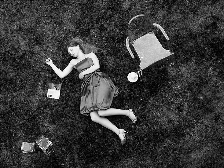 Celles qui ont inspiré le photographe, commerçantes ou clientes, chics ou glamour, incarnent une pause café mêlant l’incongru à l’élégance, totalement décalée dans ces miscellanées photographiques. Dans un pré avec des vaches, dans une piscine ou dans un musée, sur un pont ou sur un héliport, dans une fontaine ou sur une voie ferrée…