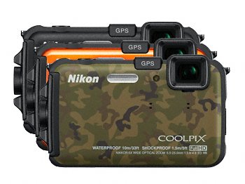 Le COOLPIX AW100 est disponible en trois couleurs : Camouflage, Orange Sucré et Noir Intense.