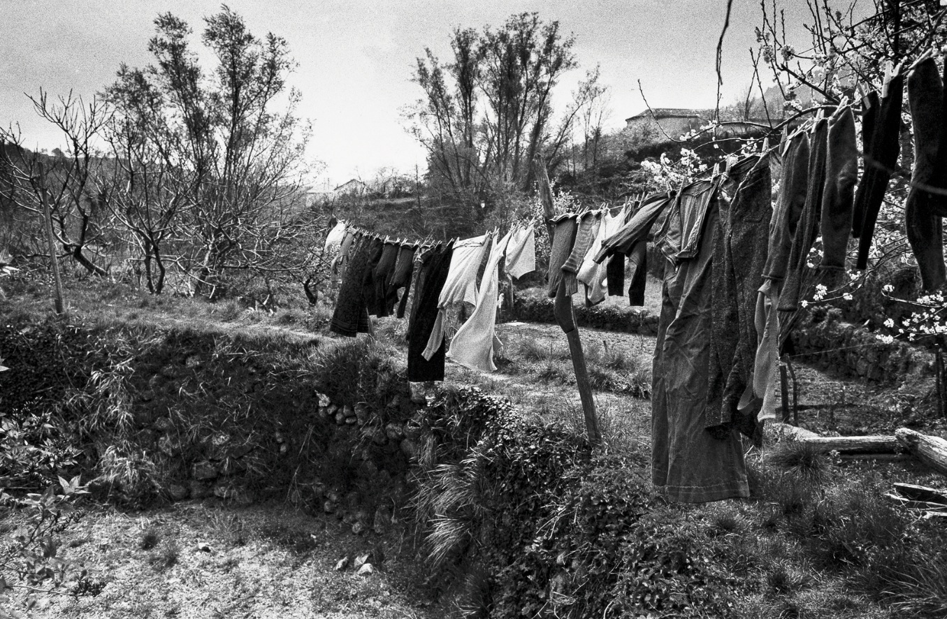 « Je ne parviens plus a me souvenir pour quelle raison exacte, par ce jour de grand vent et de grande pluie, j'avais soudain décidé de quitter mon confortable fauteuil de lecture près de la cheminée et m’étais aventuré dans les bois en pente derrière la maison (...) A un certain moment, tandis que je m'évertuais ainsi, contournant péniblement un grand champ spongieux délimité par des barbelés, j'ai aperçu cette ligne d'arbres harcelée par une meute de nuages en furie. Pour une fois, j'ai un peu de mal à me remémorer ce qui a bien pu me fasciner dans ce spectacle puis me déterminer, trempé comme je l'étais sous la pluie insistante et pressé de réintégrer mes pénates, à saisir mon fidèle Minox et à fixer l'image de cet anodin coin de campagne assombri par la tempête. Cependant, si ! Car, à bien l'examiner, je crois soudain me rappeler le sentiment qui me poussa à saisir ce cliché : une sorte de commisération fraternelle pour cet arbre qu'on aperçoit à l'extrême gauche, dont l'attitude à la fois ébouriffée et hiératique en tête de la colonne de ses congénères (qui semblent se couler peureusement en file indienne derrière lui), m'a semblé symbolique de la secrète vaillance qu'il fallait aux grands arbres pour endurer ainsi sur une lande désolée un tel assaut des intempéries, a fortiori lorsque votre ancienneté et vos probables mérites vous ont promu chef de file ! »