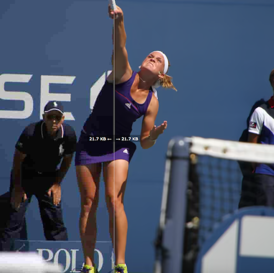Vous pouvez comparer plus d'images http://xooyoozoo.github.io/yolo-octo-bugfixes/#tennis&jpg=s&bpg=s">ici.