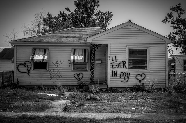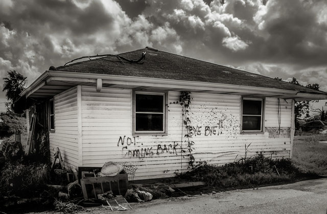 Touché personnellement par la catastrophe, l'artiste a perdu sa maison d'enfance, tout comme sa grand-mère et certains de ses amis qui ont perdu la leur. Quelques mois après la catastrophe, c'est avec son appareil autour du cou qu'il arpentera les quartiers et leurs rues détruites par les vents et les pluies. Les façades des maisons dévoilent des mots de ces anciens habitants, telles des lettres d'au revoir que le photographe a su mettre en lumière. "Pour toujours dans mon coeur", "Je reviendrai", "Aurevoir", peut-on lire sur certains murs.