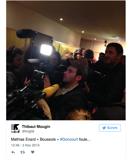 © Thibaut Mougin, capture d'écran http://bigbrowser.blog.lemonde.fr/2015/11/03/la-cohue-du-prix-goncourt-ils-se-battent-pour-lavoir-en-photo-alors-quil-est-sur-google/"